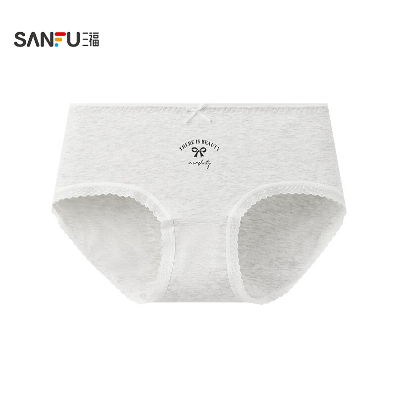 三福 女中腰包臀内裤 清新少女风印花柔软透气半平角裤506909 花灰蝴蝶结 1条 均码