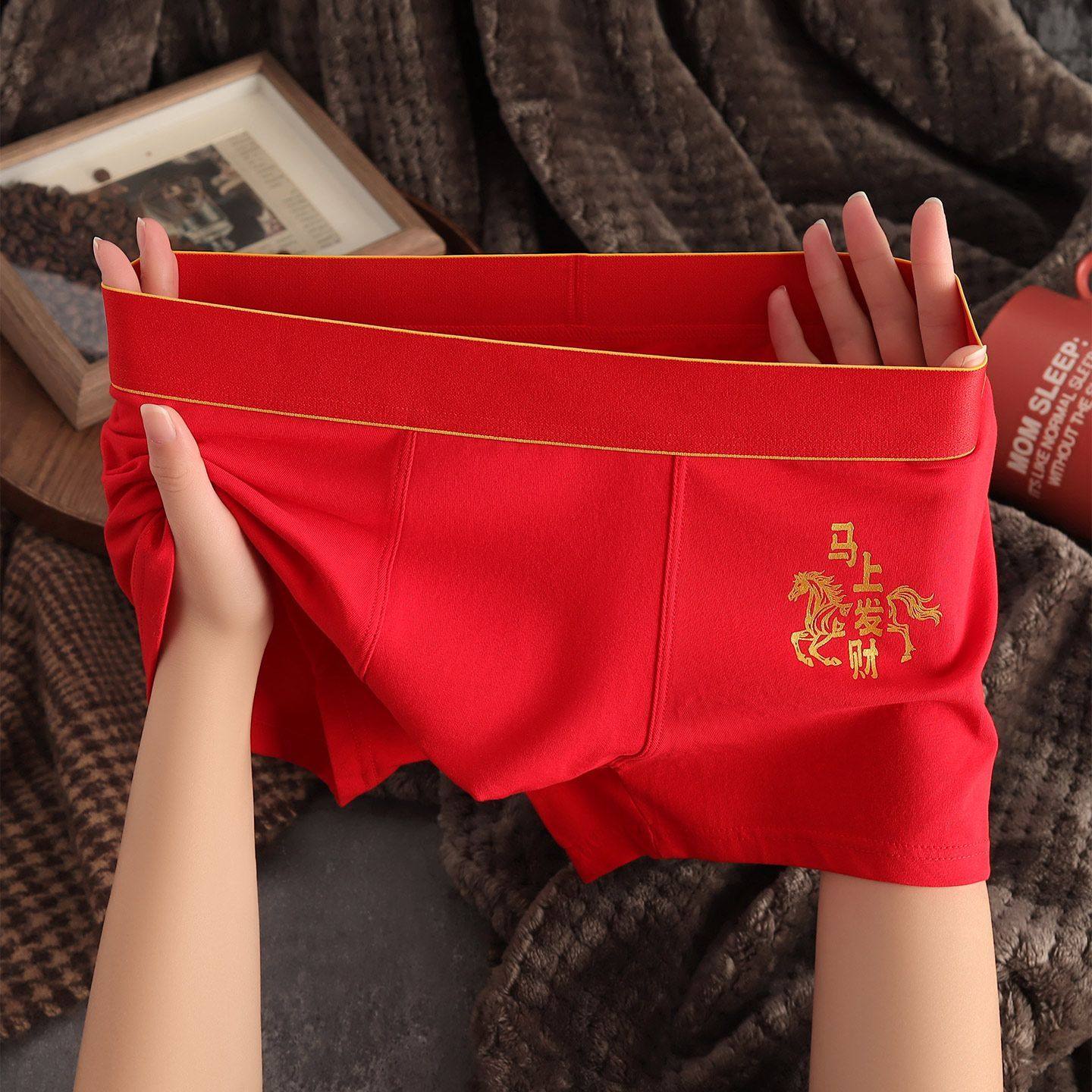 纯棉新款本命年男士内裤红色结婚喜庆平角裤透气爆款潮四角短裤头
