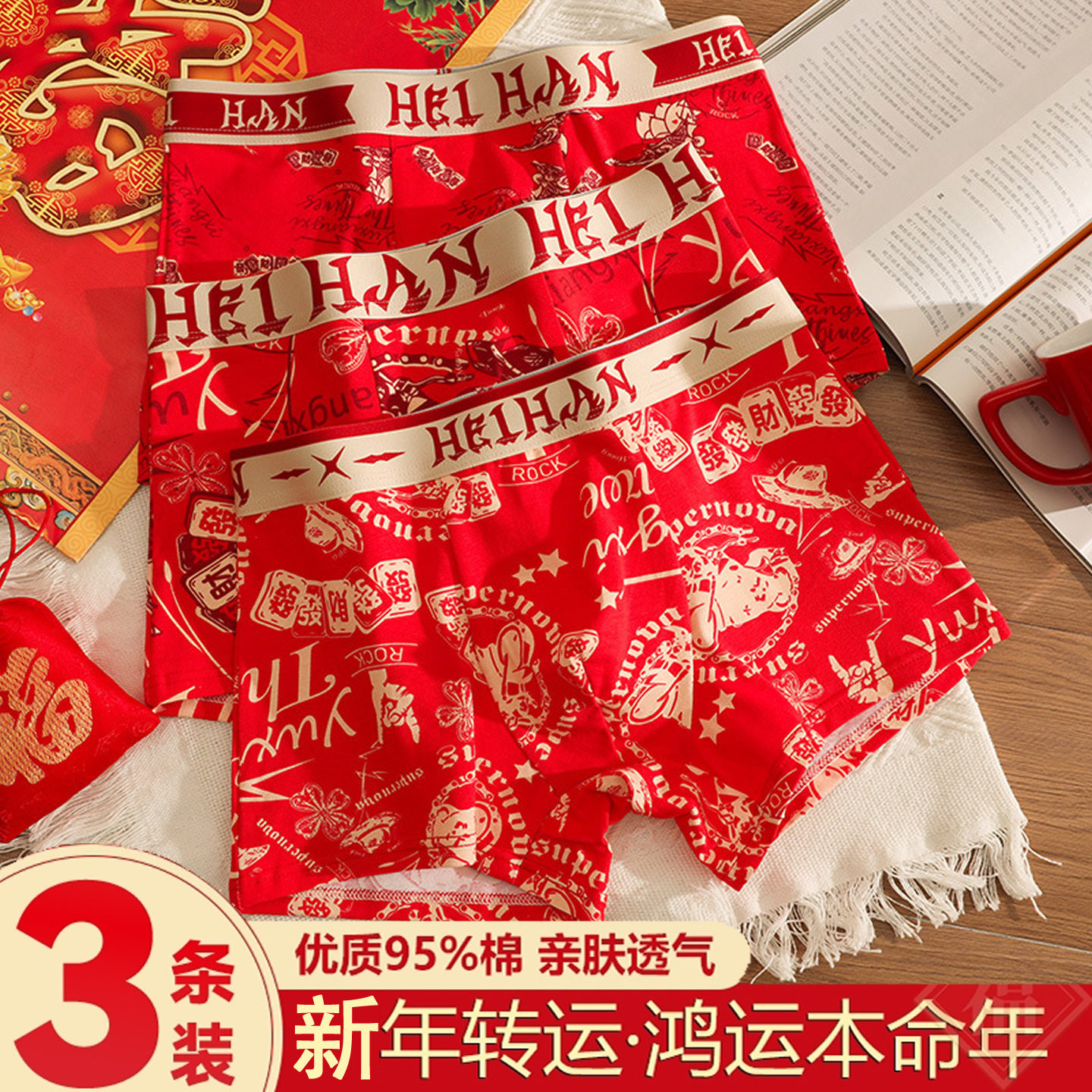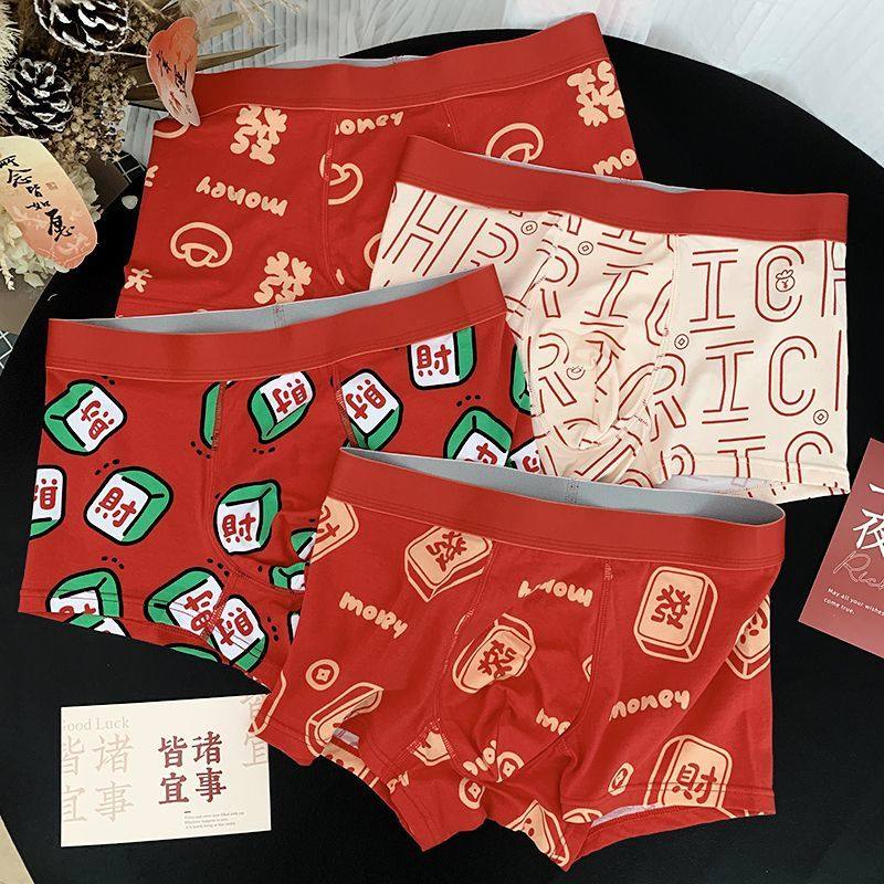 红色男士内裤本命年纯棉抗菌宽松马年男童男生礼物结婚平角短裤头
