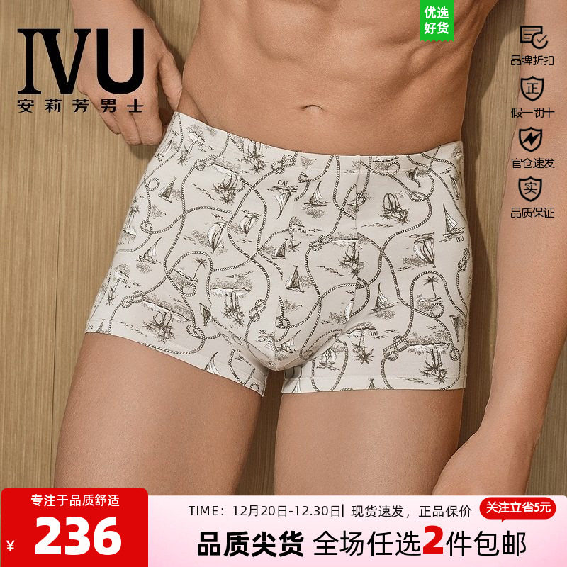 安莉芳旗下IVU专柜新品莫代尔混纺时尚印花平角裤男士内裤UP00134