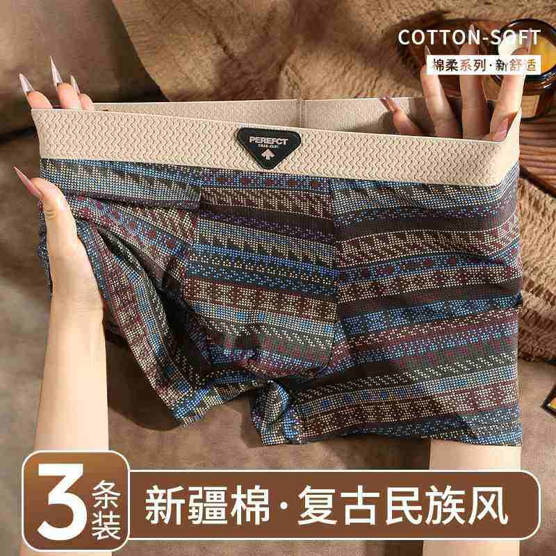 抖音爆款民族风男士内裤美式轻奢风平角裤纯棉舒适透气中腰四角裤