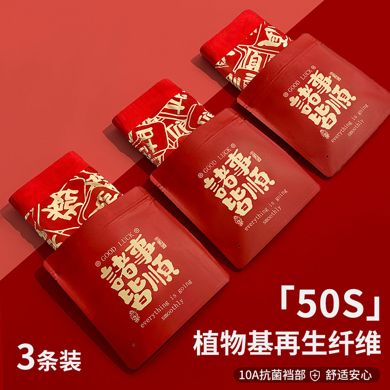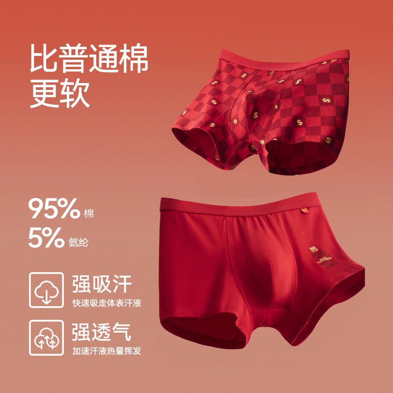 【绵柔】10A抑菌裆大红男士内裤 喜庆结婚红色平角运动青年内裤男