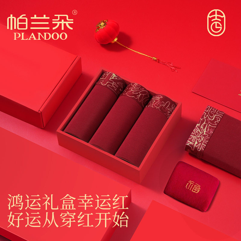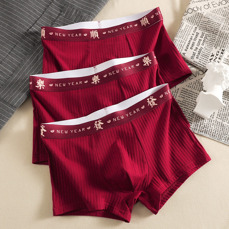 2026年7A级抗菌本命年内裤男60支柔软纯棉透气结婚礼盒装男士内裤