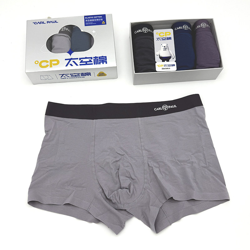 4条装 专柜正品白熊太空棉男士中腰内裤纯棉蚕丝裆抑菌透气平角裤