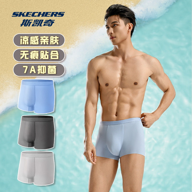 斯凯奇官方男士内裤薄款7A抗菌透气平角短裤青少年高端宽松四角裤