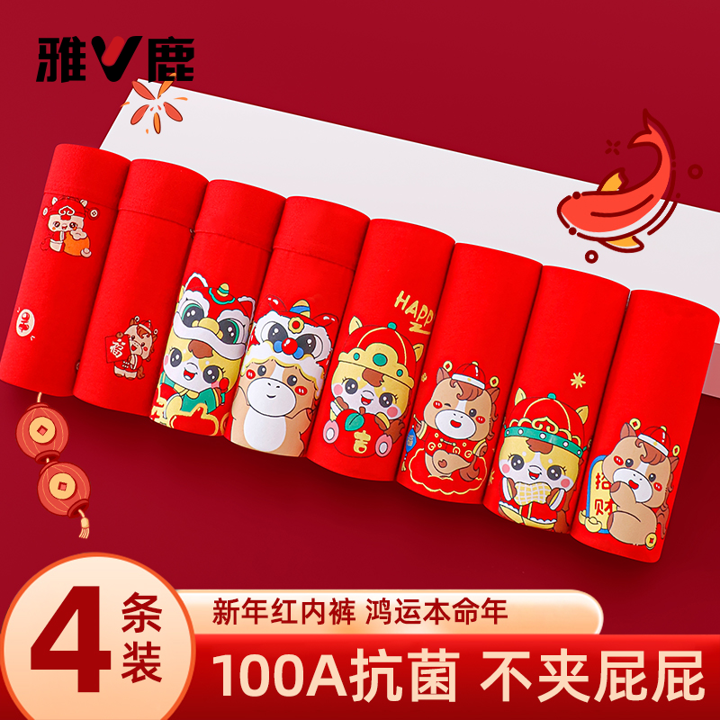 雅鹿马年本命年内裤男纯棉男士2025新款男生男款四角裤头红色大红