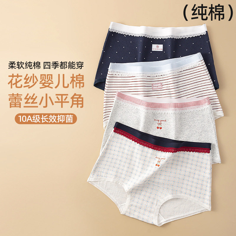 棉文化纯棉女内裤新疆棉抗菌透气舒适中腰裤女士纯色平角裤夏季