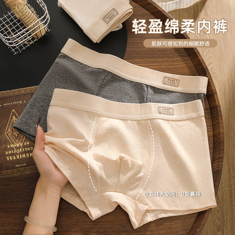 男士内裤婴儿棉提花软糯抑菌舒适透气宽松彩棉男款纯棉平角内裤