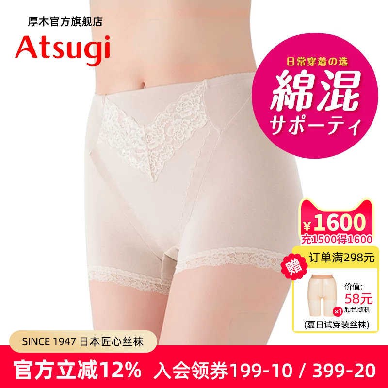 ATSUGI/厚木女士棉混平角内裤 束缚收小腹蕾丝花边舒适透气安全裤