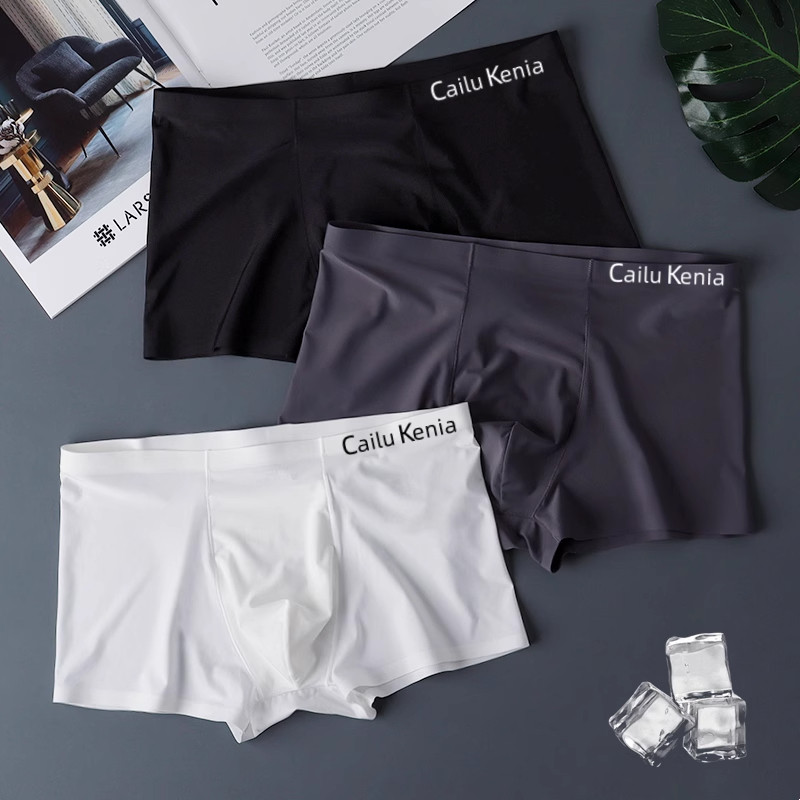 男士夏季新款冰丝无痕抑菌裆四角平角透气短裤头男生舒适时尚内裤