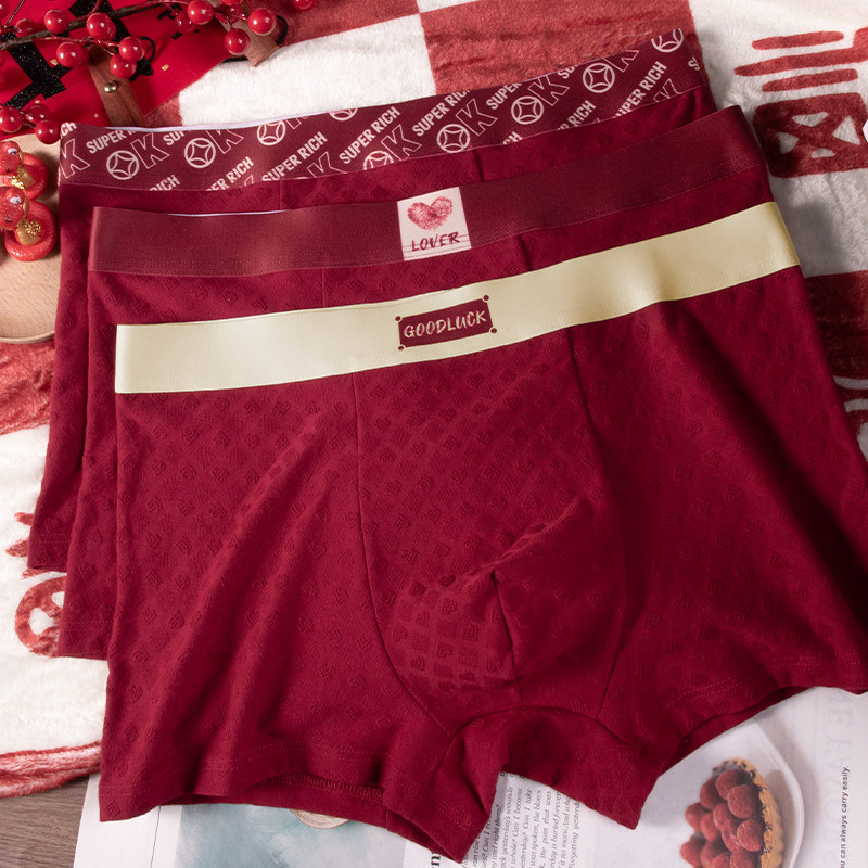 本命年新年结婚红色内裤男舒适纯棉无痕a类抗菌时尚防卷边平角裤
