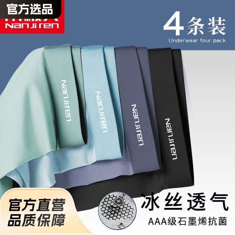 南极人男士内裤冰丝四角裤衩子平角裤夏季薄款无痕抗菌透气短裤男