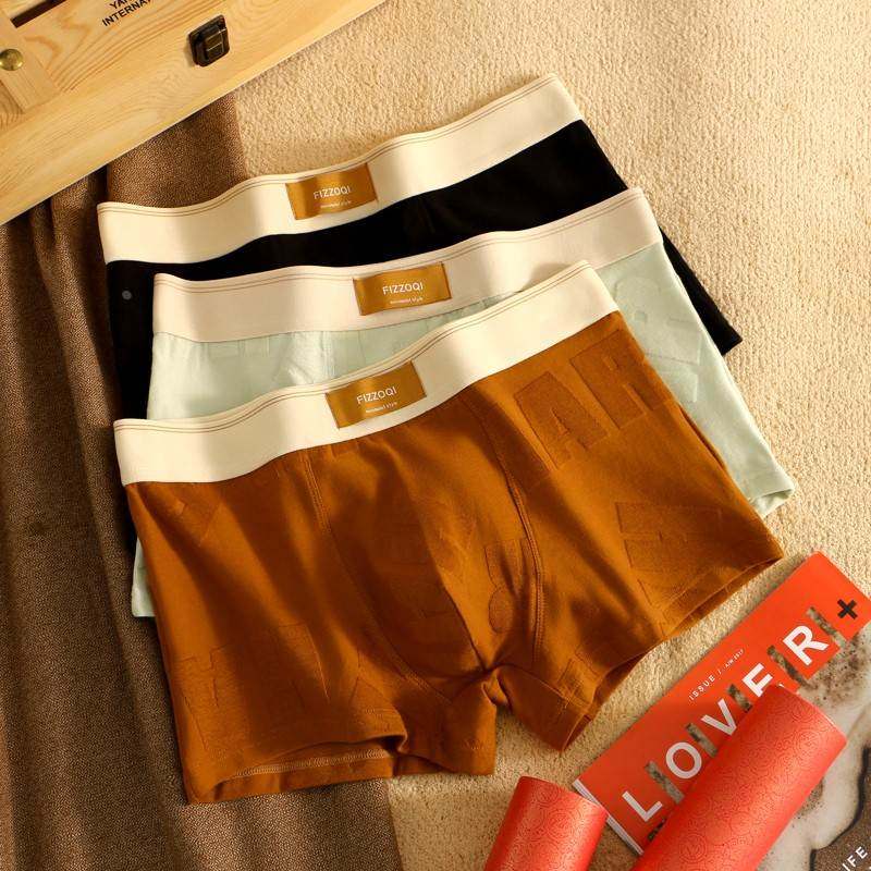 缇娅朵正品3条盒装磨毛暖感男士发热平角内裤抗菌纯棉裆四角裤头