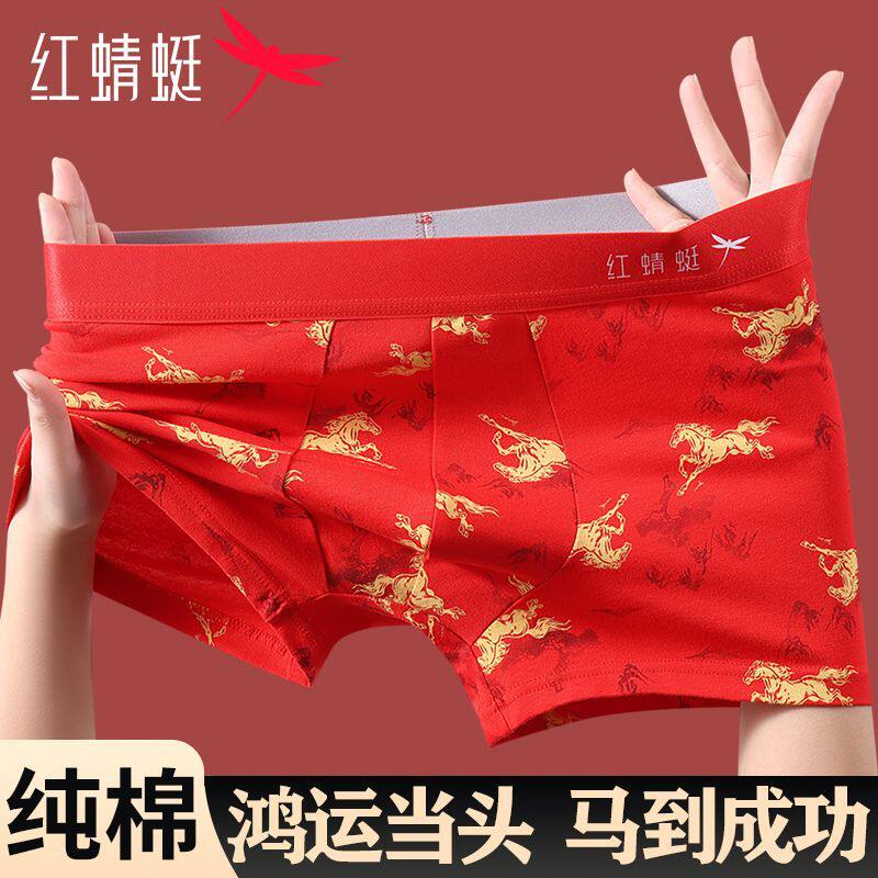红蜻蜓马年本命年男士内裤纯棉裆抗菌平角裤喜庆结婚透气四角短裤