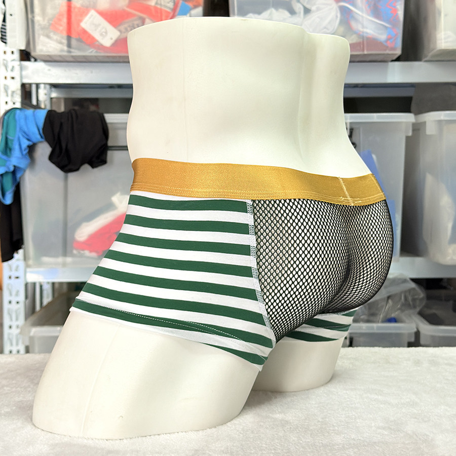 3条装男士条纹内裤性感棉质低腰个性舒适透明透气四角平角短裤潮