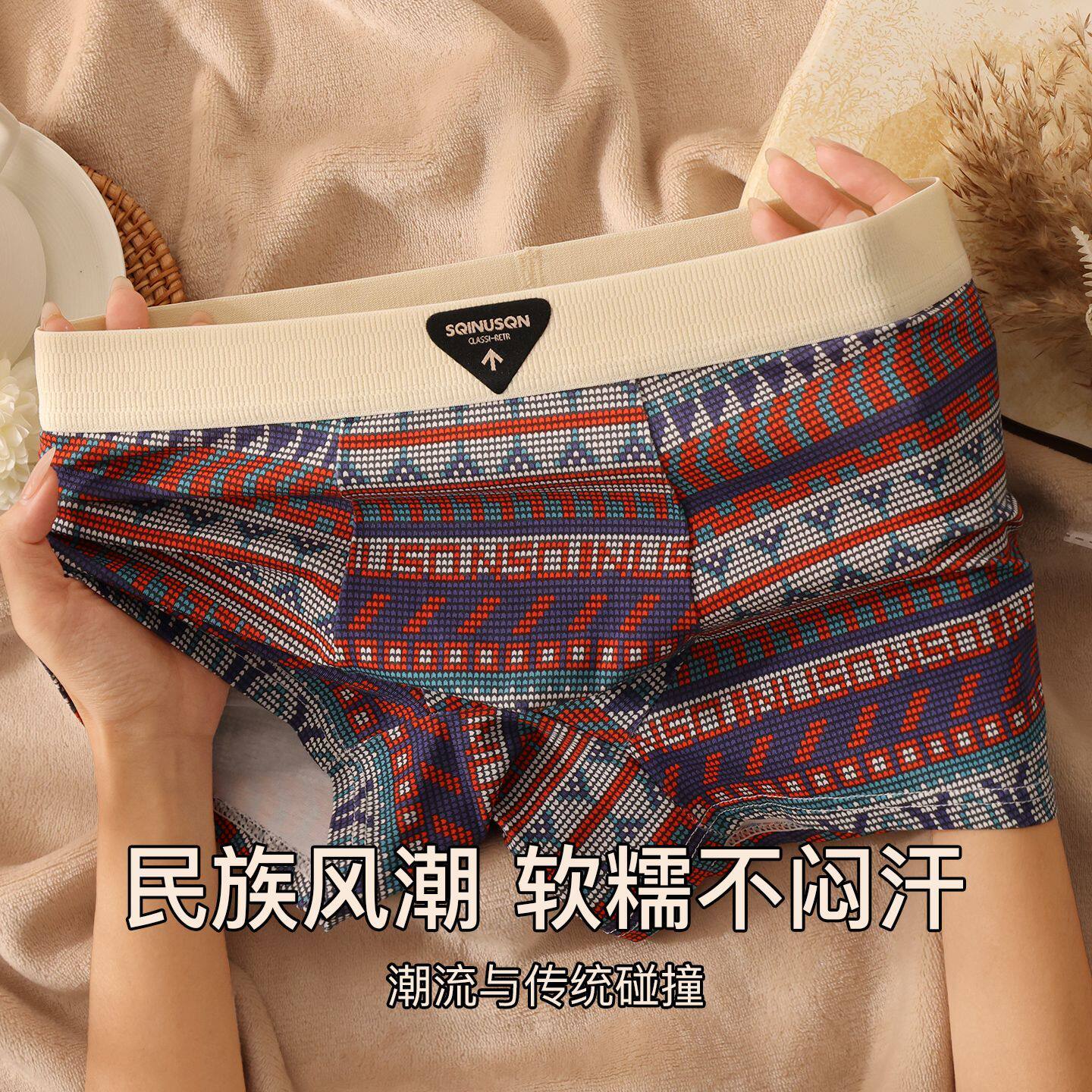 冰丝男士内裤薄款透气宽松平角裤夏季复古民族风新款四角短裤运动