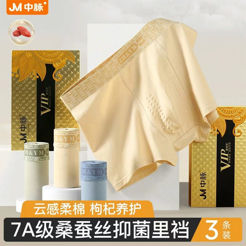 乐大精选桑蚕丝7A抗菌男士平角内裤3件礼盒装超柔透气运动养生裤