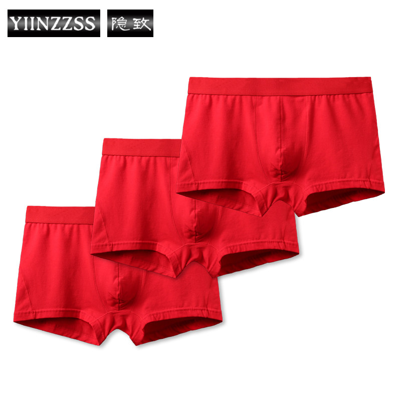 纯棉男士内裤本命年红色抗菌透气平角裤男简约四角裤白色中腰百搭