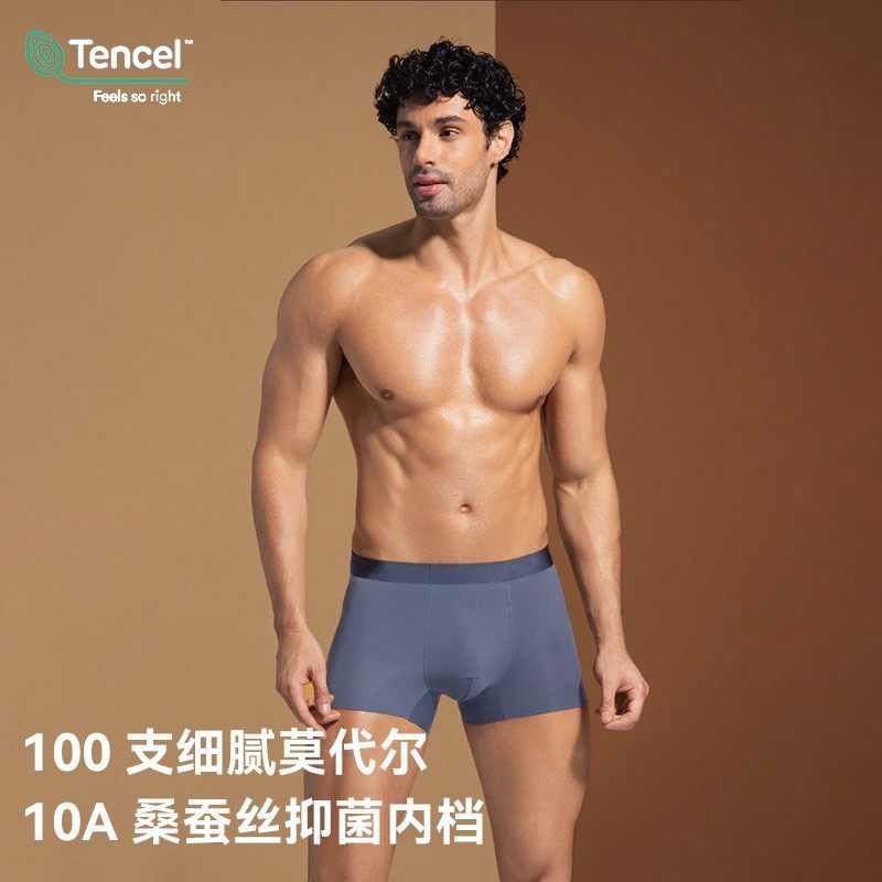 Tencel莫代尔男士平角内裤桑蚕丝抑菌无痕透气中腰抗菌平角裤新款