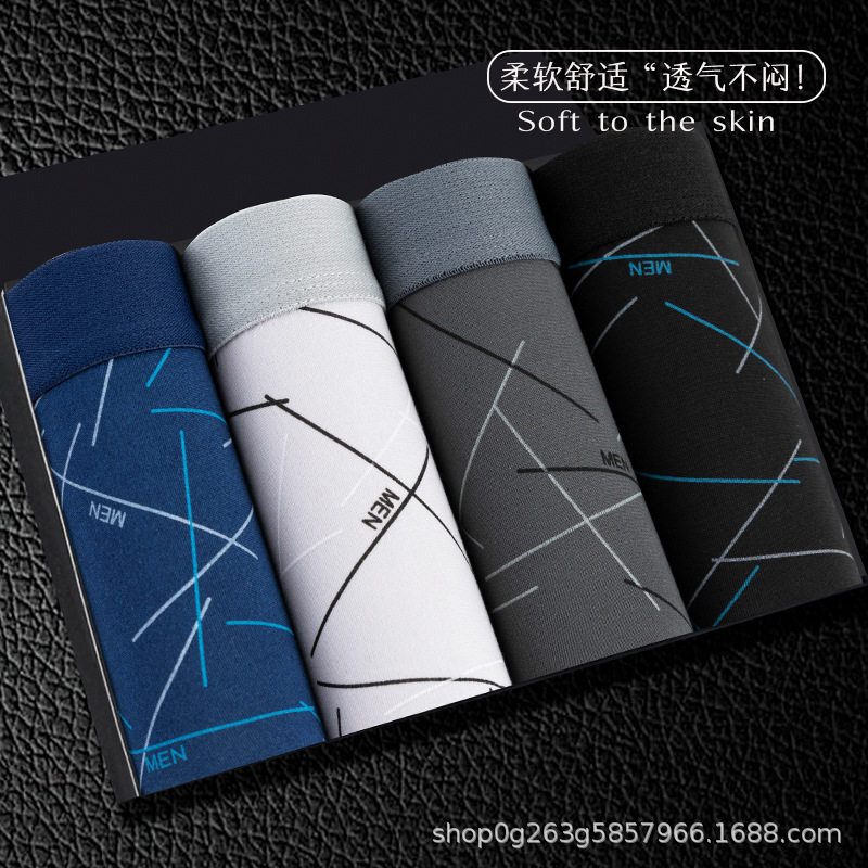 单罐装无痕男士内裤男四角裤花纱莫代尔男生潮流短裤头平角内裤