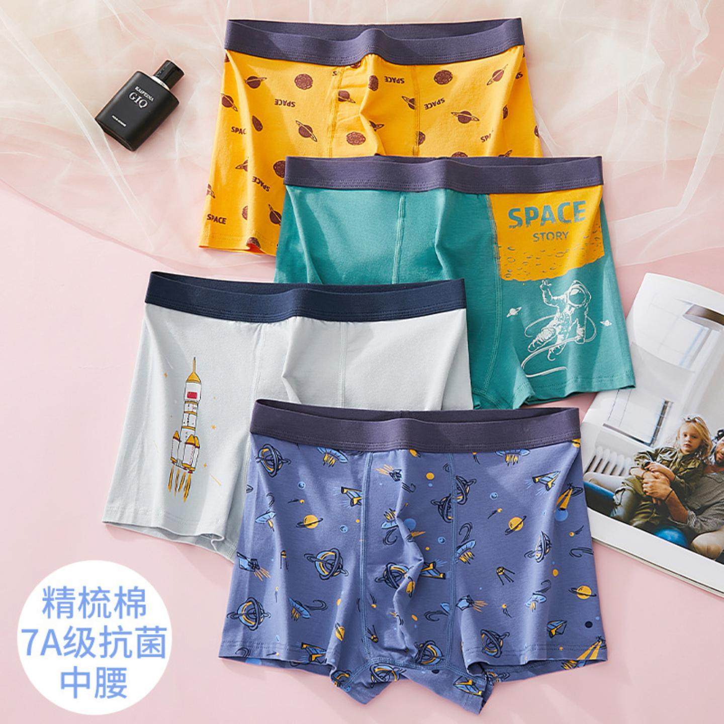 青少年内裤男生发育期夏季大码高初中学生纯棉抗菌平角男孩四角裤