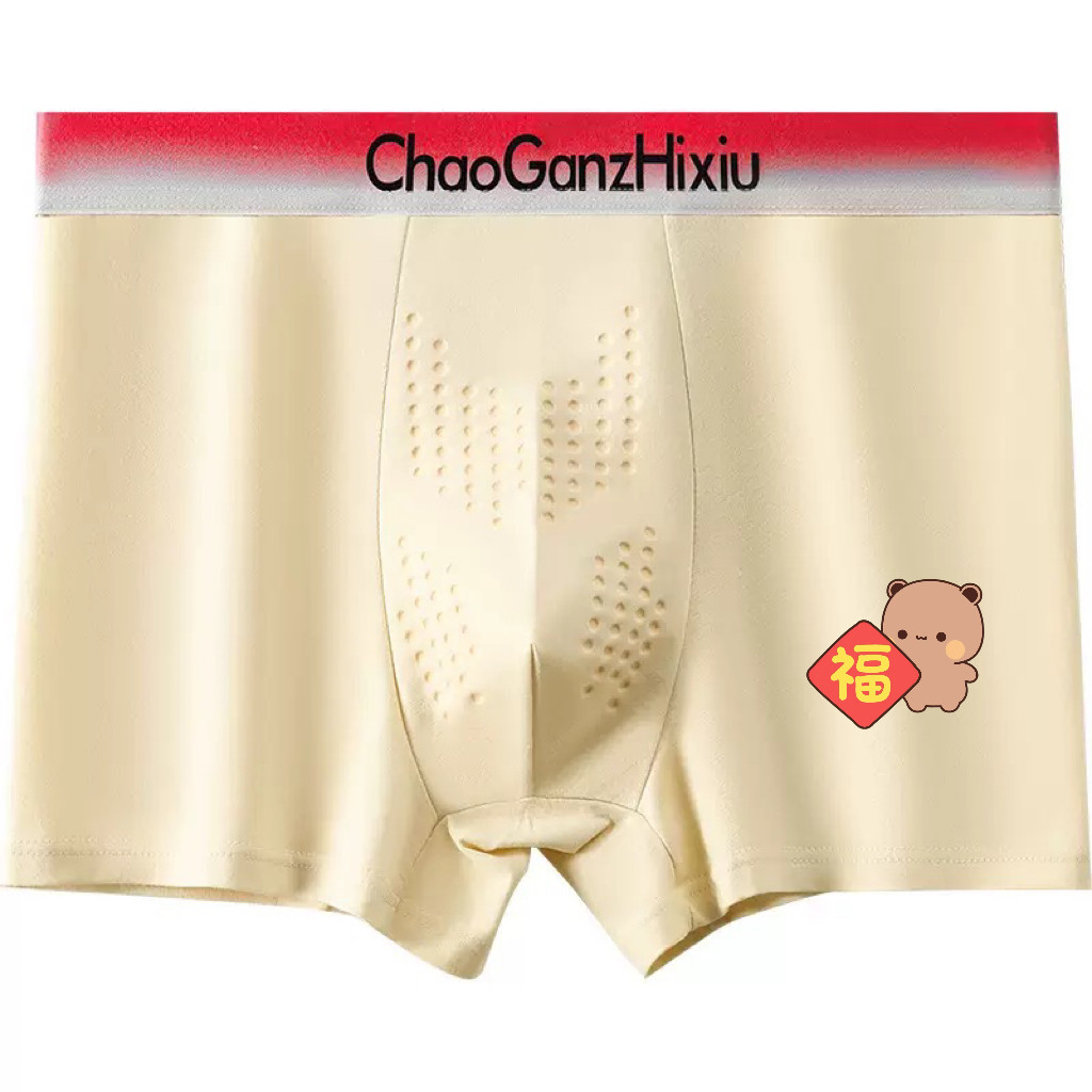 猫人正品本命年男士内裤冰丝红红绿绿纯棉四角短裤莫代尔结婚新款