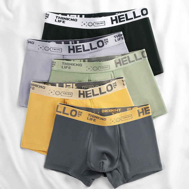 4条装HELLO款男士内裤平角裤柔软舒适男生内裤透气运动四角短裤头