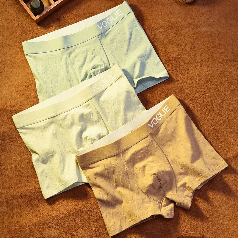 男士内裤纯棉透气平角裤夏季个性潮流提花四角裤男生青年短裤裤衩