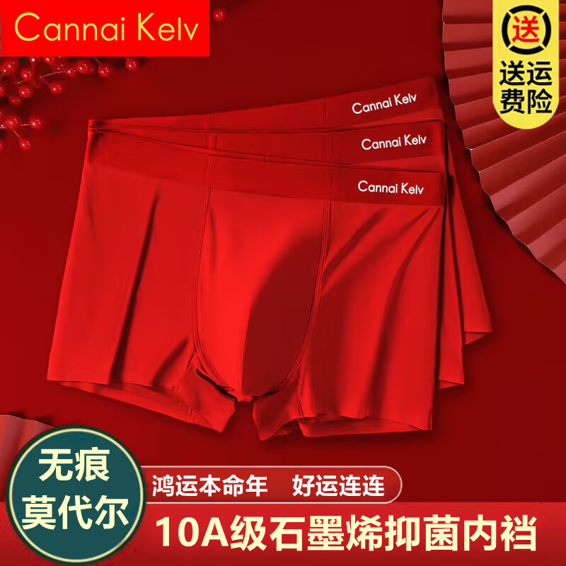 PDTMQZ&CK男士内裤本命年红色无痕莫代尔平角男纯棉结婚四角短裤