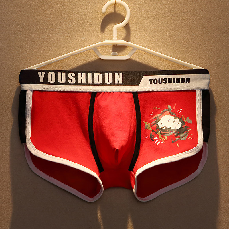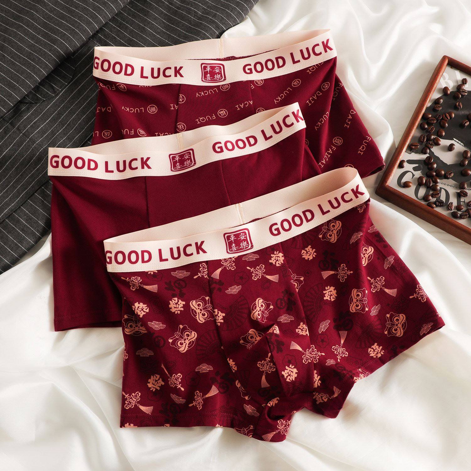 男士内裤纯棉本命年红色内裤男款时尚平角底裤男生结婚喜庆红裤衩