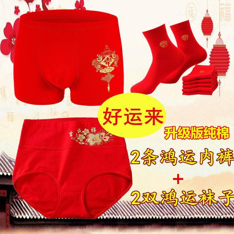 大红情侣三角内裤男女本命年新婚大码纯棉高腰透气平角裤衩短裤头