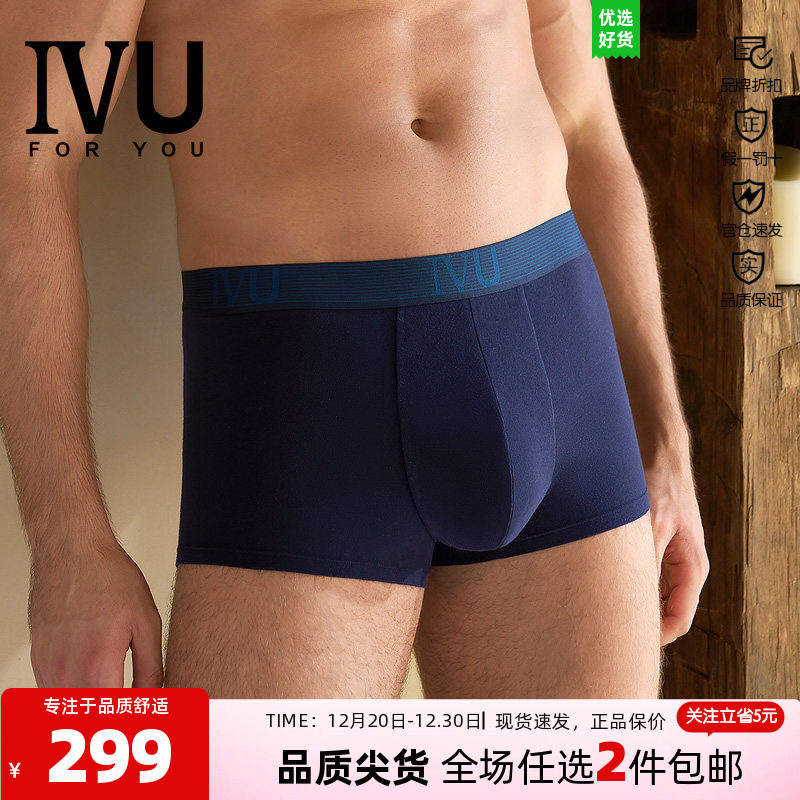 安莉芳旗下IVU男士薄款棉质内裤舒适透气中腰平角裤3条装UP30050