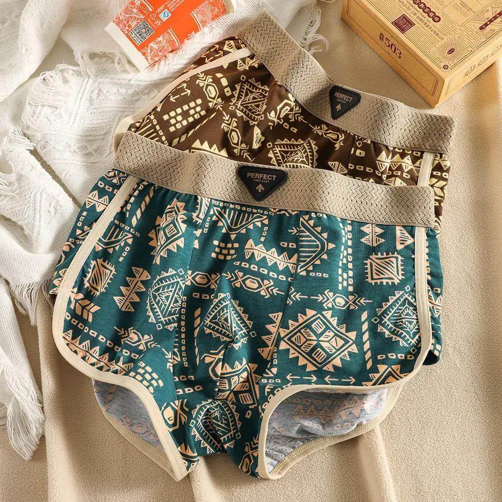 名佳怡优选店男士复古民族风内裤美式纯棉透气四角裤潮流印花a34