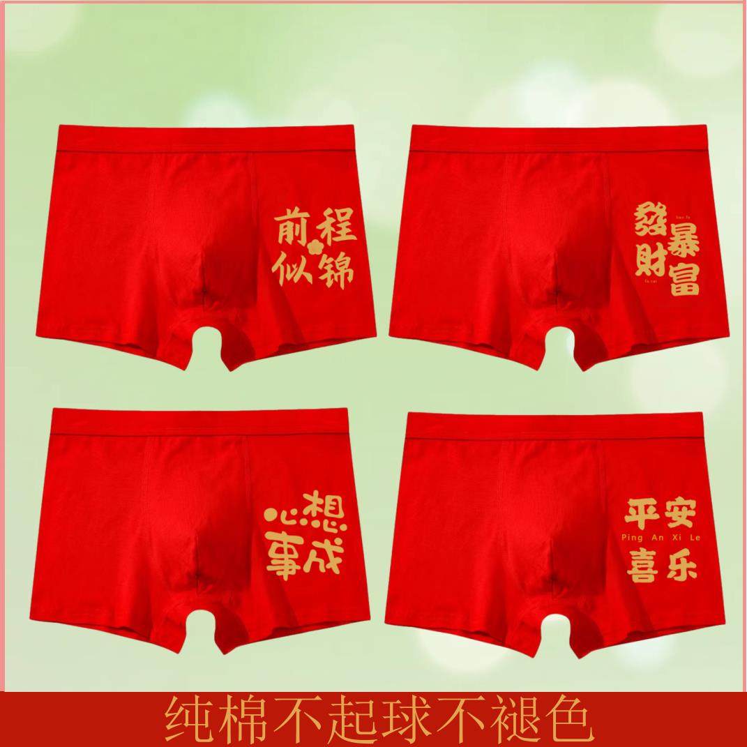 本命年男士内裤纯棉喜庆大红男生中腰舒适透气青年平角四角短裤衩