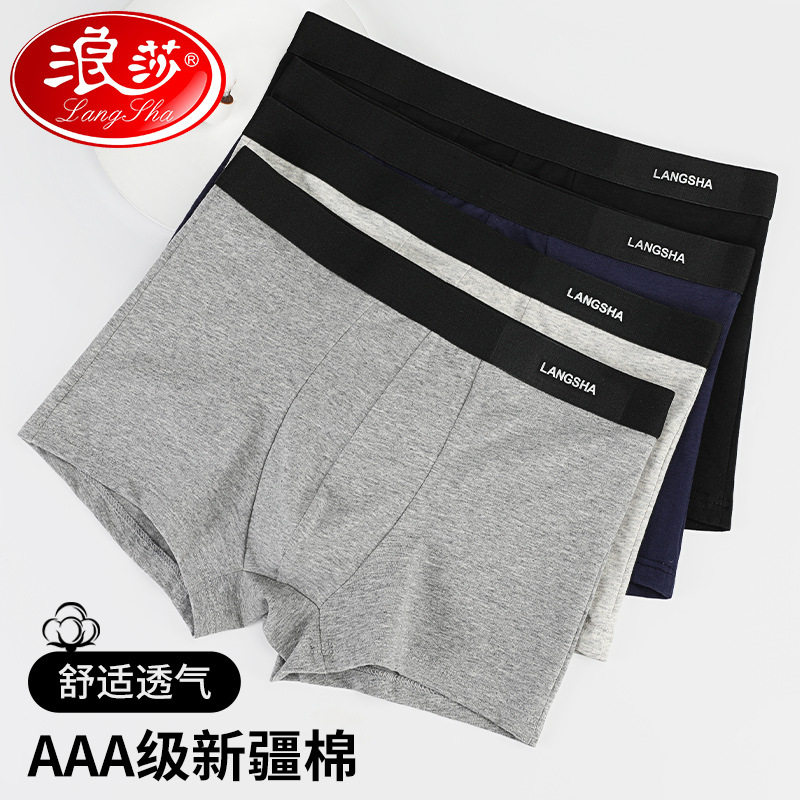 浪莎男士内裤夏季纯棉四角裤中腰运动透气薄款男生平角短裤头裤衩
