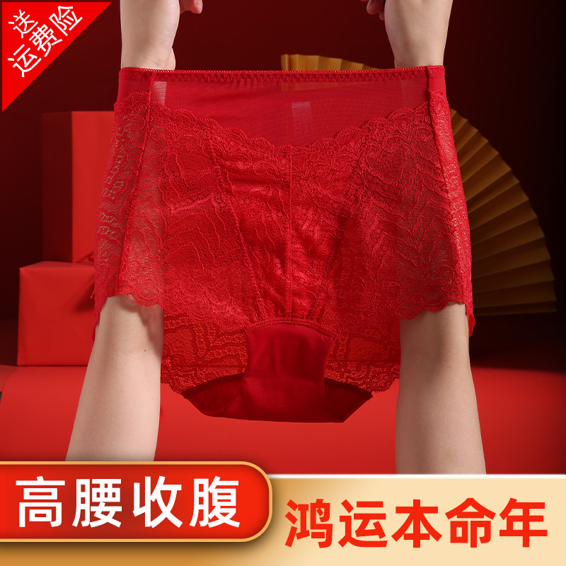 本命年红色内裤女士纯棉裆性感蕾丝女生结婚新娘火辣纯欲风三角裤