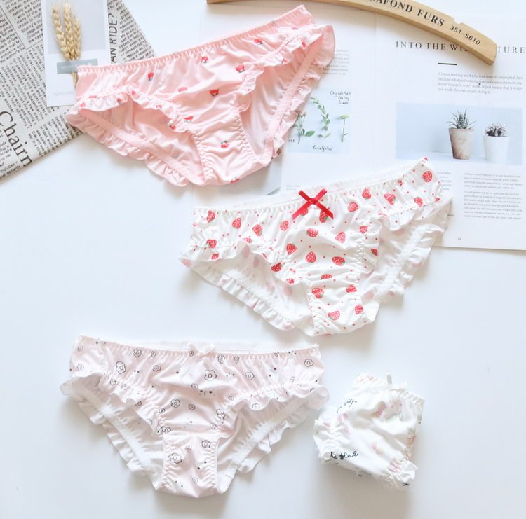 低腰牛奶丝内裤女生学生女式短裤卡哇伊卡通可爱木耳边甜美