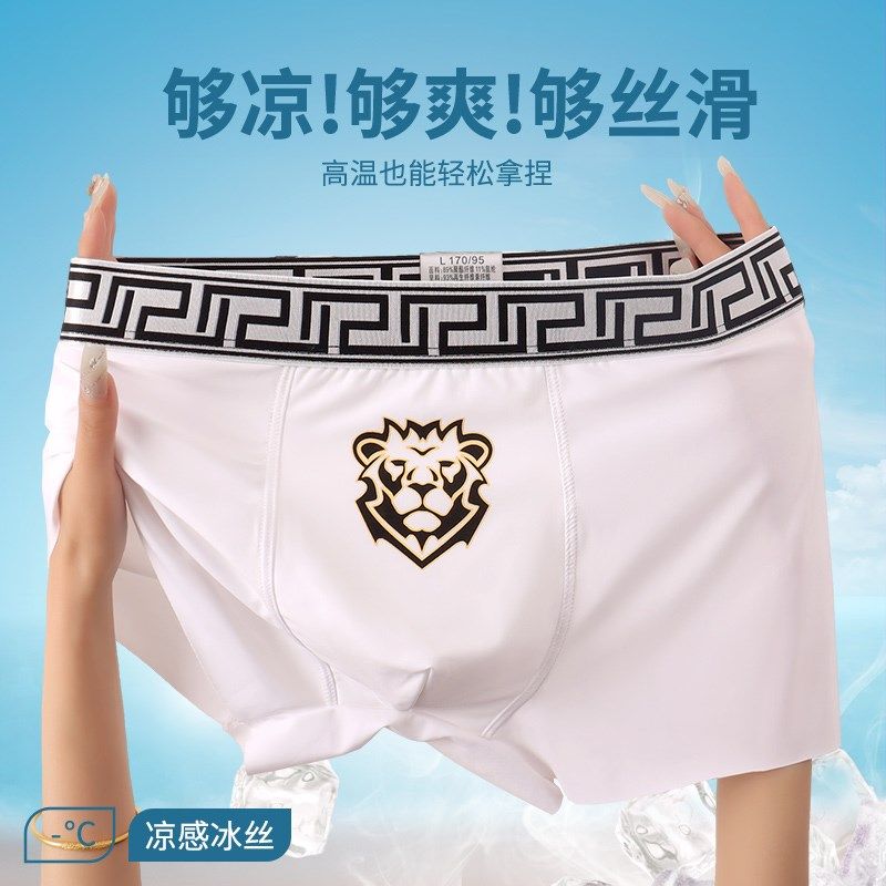 男士内裤夏季冰丝舒适凉感无痕裤头轻奢个性潮流印花抗菌四角裤衩
