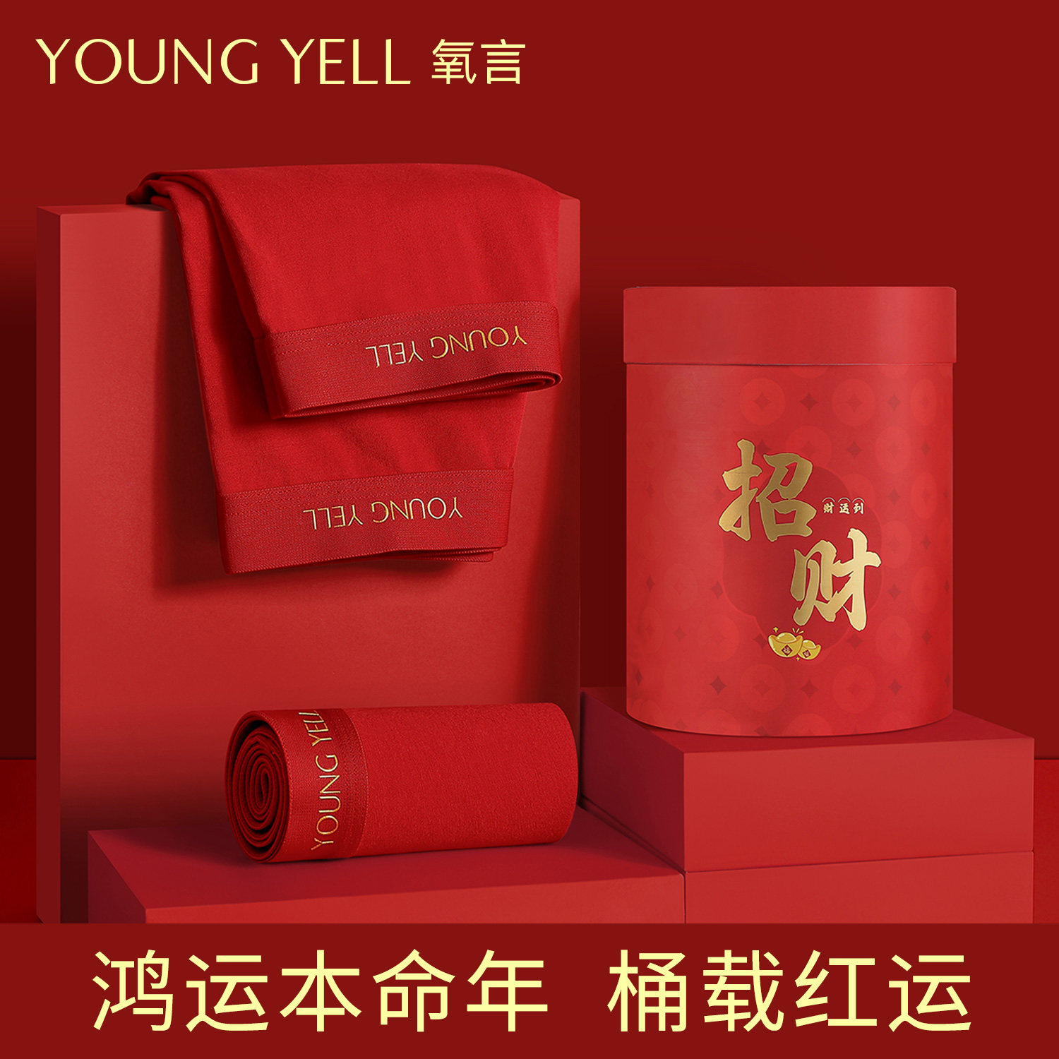 氧言本命年内裤男士2025蛇年红色纯棉抗菌全棉裆男款平角裤礼盒装
