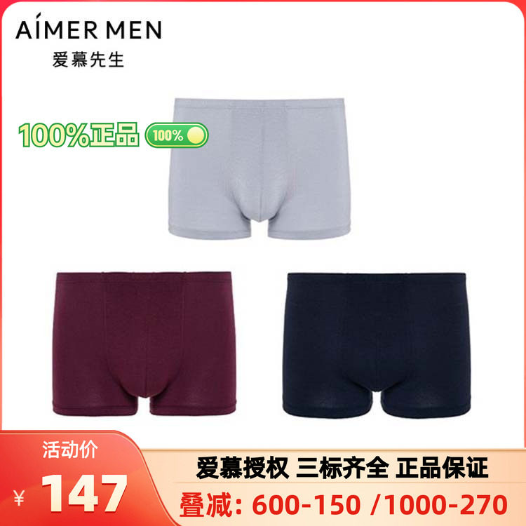 3条装 爱慕先生正品男士款智选莫木代尔内裤包腰平角裤NS23K731