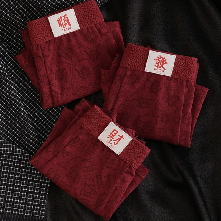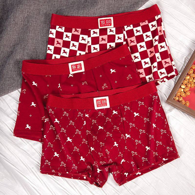 10A抑菌吉言印花红内裤棉质酒红色男士内裤元旦新年喜庆平角裤