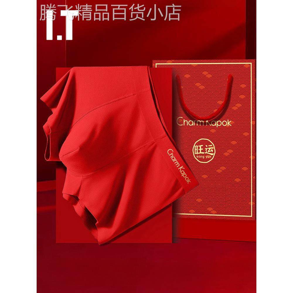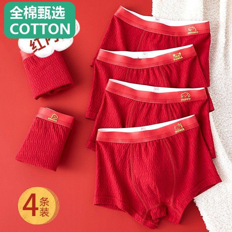 本命年男士内裤纯棉舒适红色平角男裤新款结婚喜庆透气四角短裤