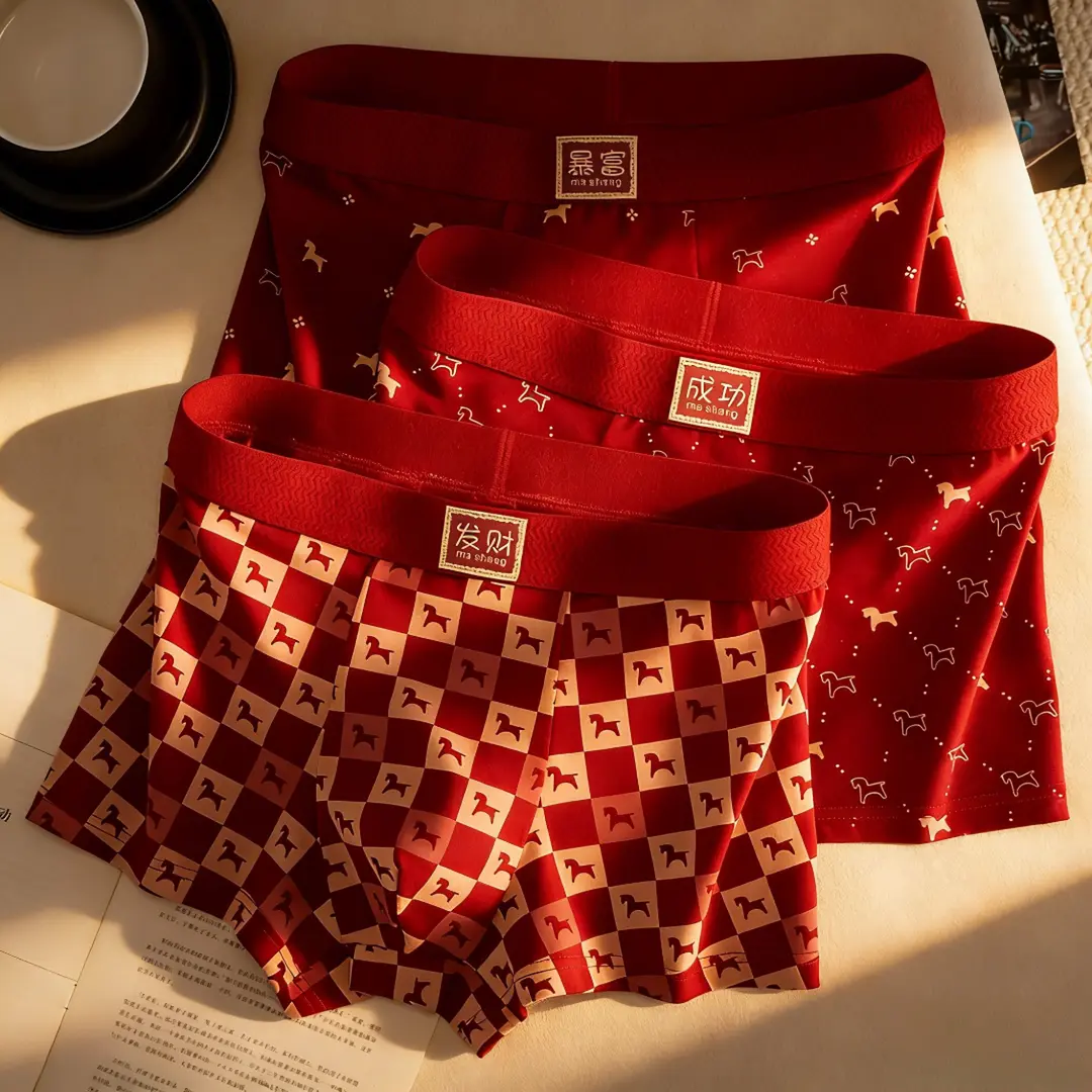 清悠虎本命年男内裤2026新款马年大红平角裤抑菌亲肤舒适四角裤衩