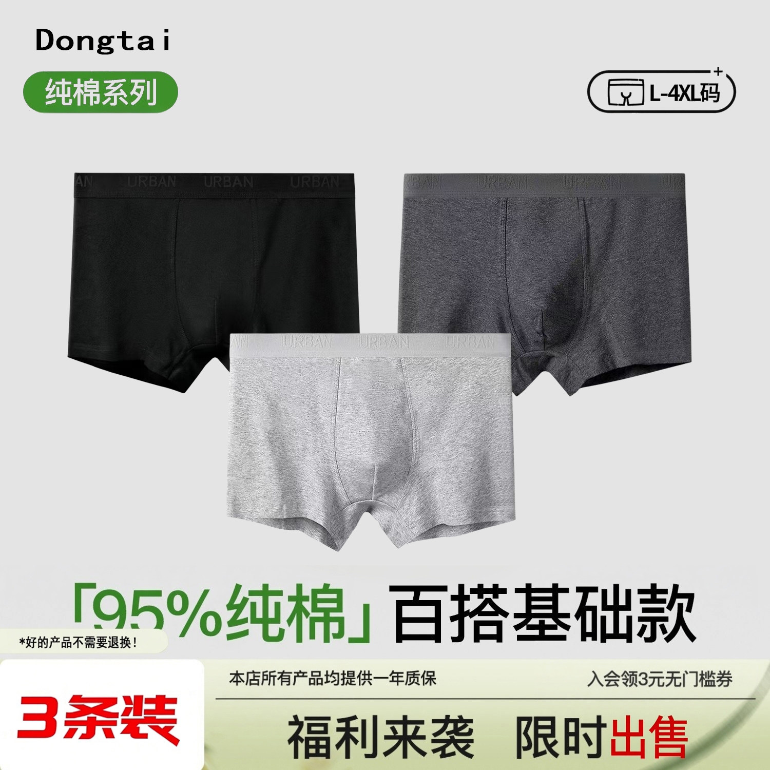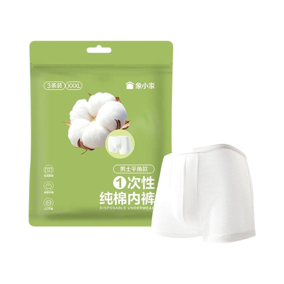 小象超市长沙象小家男士平角款一次性纯棉内裤3条装XL XXL XXXL