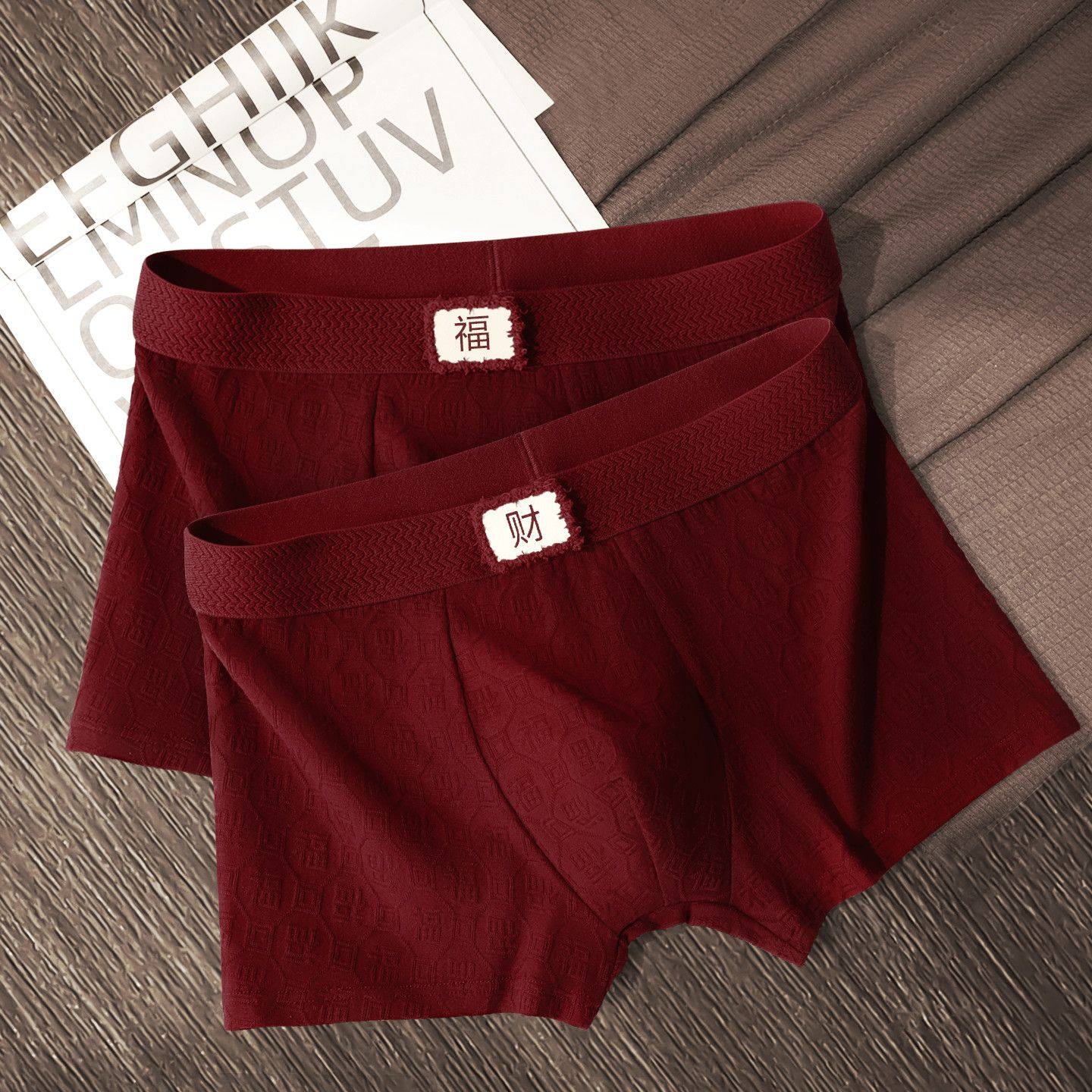 新年红内裤过年棉质酒红色男士内裤元旦新年喜庆居家平角裤ZX