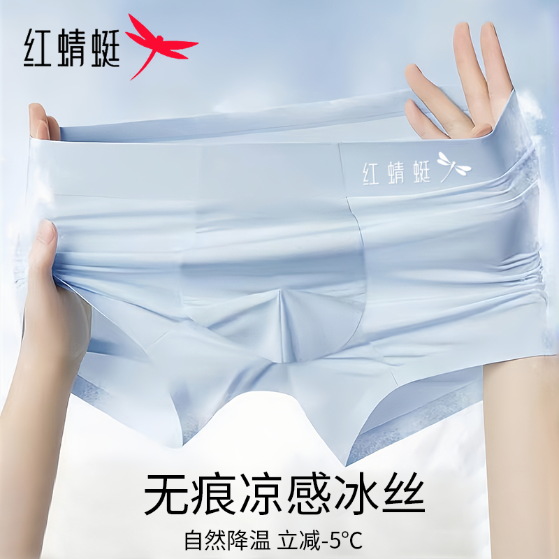 红蜻蜓男士无痕冰丝内裤男中腰大码轻薄款四角短裤吸湿透气平角裤
