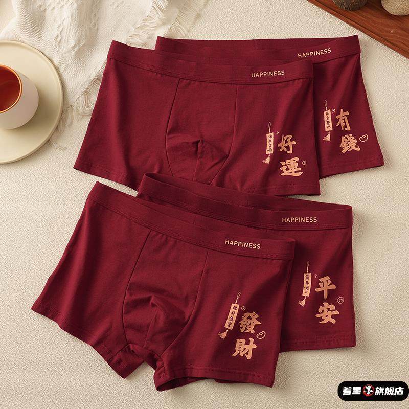 男士本命年红内裤2026内裤纯棉透气平角青年结婚酒红喜庆四角短裤