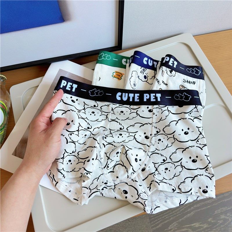 男士内裤纯棉薄款卡通可爱印花个性潮流四角裤青少年透气大码平角