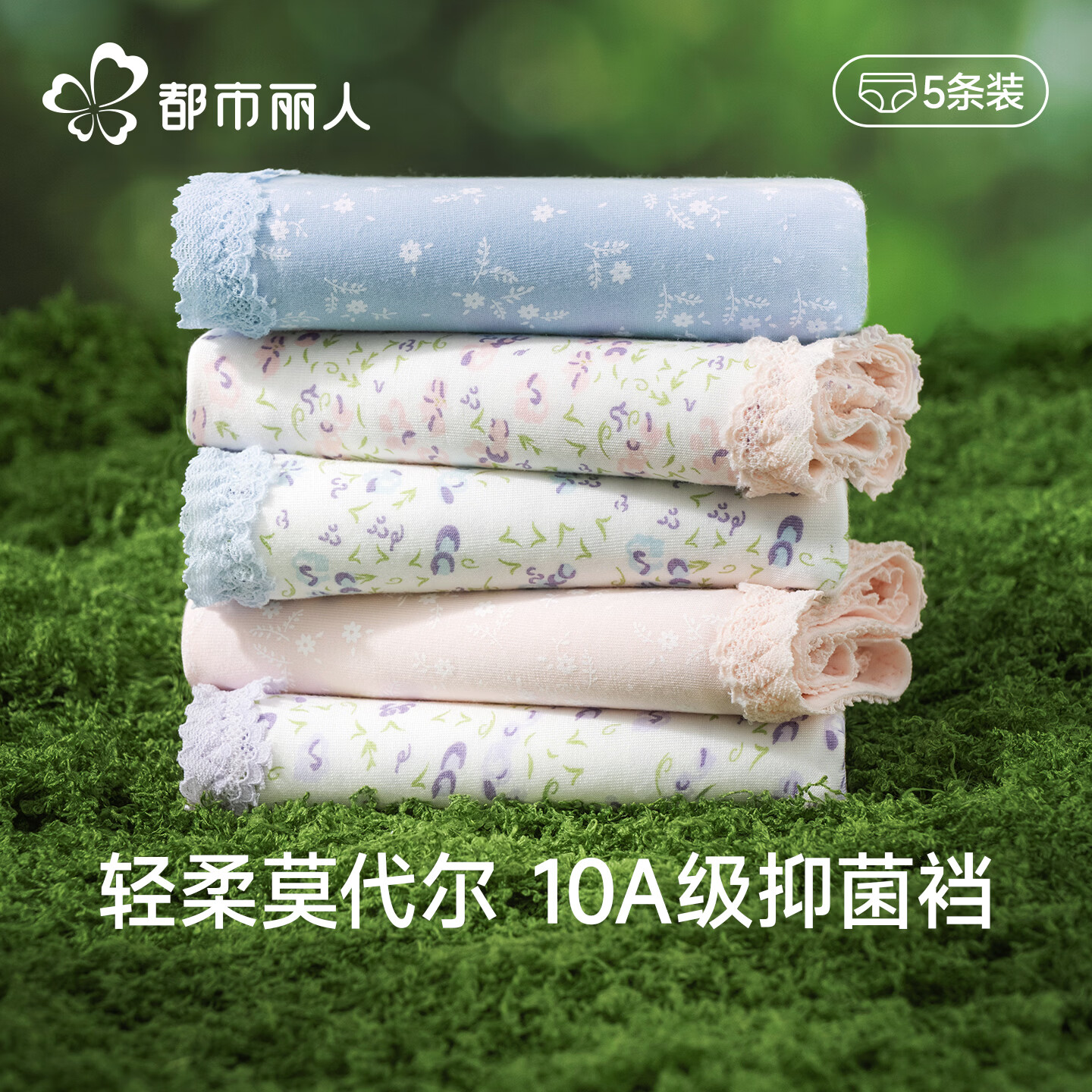 都市丽人莫代尔内裤女士无痕纯棉抗菌裆全棉2026新款高腰女生三角裤 粉樱轻舞+粉妆花颜+蓝梦花语+蓝调花韵+紫雾花影 M 【80-100斤】