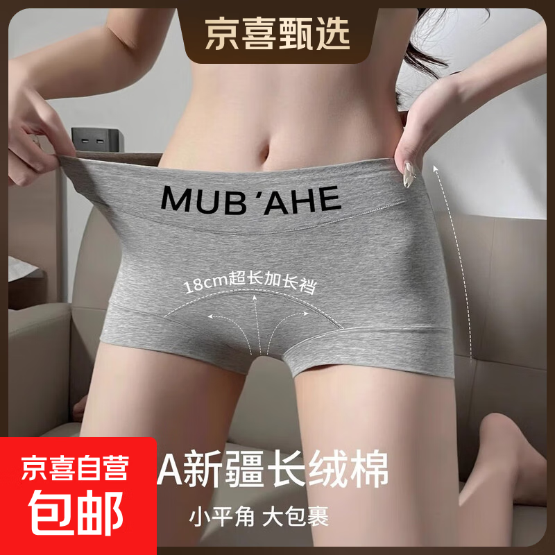 【猫人同款】纯棉内裤女士7A抗菌石墨烯加长内裆中腰四角平角裤 1条装-银灰 XL (100-120斤)